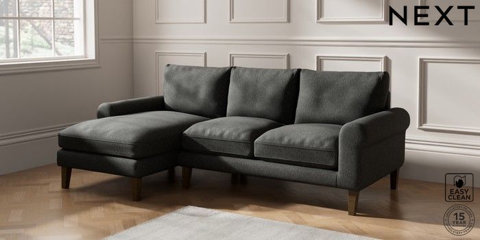 6.12.1 Buy Palermo Relaxed Sit Medium Sofa Chaise - Left Hand Tweedy Blend Easy Clean Charcoal Grey Tapered - Mid from the Next UK online shop Click here to use our accessible website