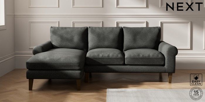 7.0.3 Buy Palermo Relaxed Sit Medium Sofa Chaise - Left Hand Tweedy Blend Easy Clean Charcoal Grey Tapered - Mid from the Next UK online shop Click here to use our accessible website