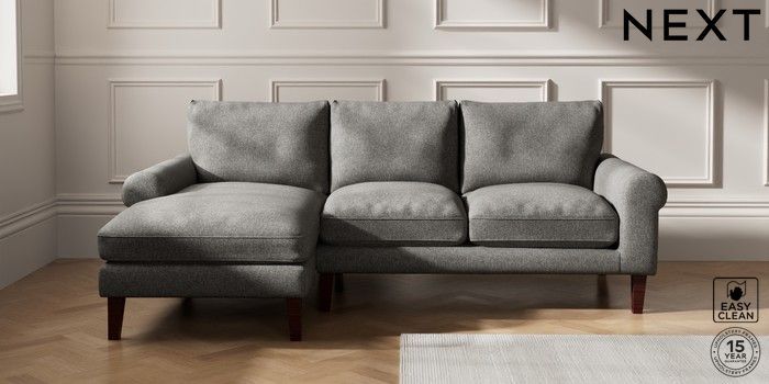 7.0.3 Buy Palermo Relaxed Sit Medium Sofa Chaise - Left Hand Tweedy Blend Easy Clean Dark Grey Tapered - Dark Brown from the Next UK online shop Click here to use our accessible website