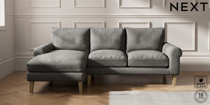 7.0.3 Buy Palermo Relaxed Sit Medium Sofa Chaise - Left Hand Tweedy Blend Easy Clean Dark Grey Tapered - Light from the Next UK online shop Click here to use our accessible website