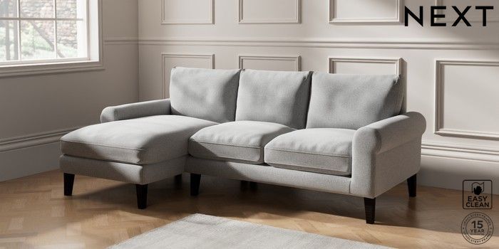 6.12.1 Buy Palermo Relaxed Sit Medium Sofa Chaise - Left Hand Tweedy Blend Easy Clean Light Silver Grey Tapered - Dark from the Next UK online shop Click here to use our accessible website