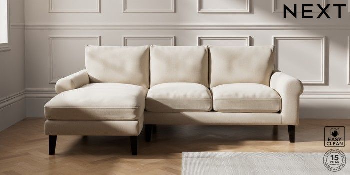 7.0.3 Buy Palermo Relaxed Sit Medium Sofa Chaise - Left Hand Tweedy Blend Easy Clean Oyster Tapered - Dark from the Next UK online shop Click here to use our accessible website