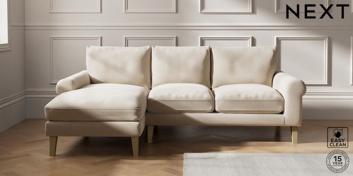 7.0.3 Buy Palermo Relaxed Sit Medium Sofa Chaise - Left Hand Tweedy Blend Easy Clean Oyster Tapered - Light from the Next UK online shop Click here to use our accessible website