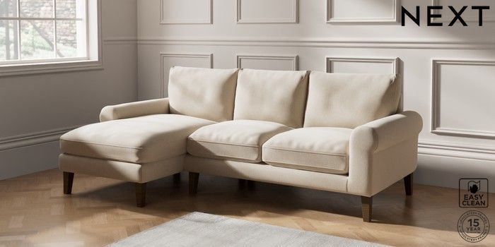 6.12.1 Buy Palermo Relaxed Sit Medium Sofa Chaise - Left Hand Tweedy Blend Easy Clean Oyster Tapered - Mid from the Next UK online shop Click here to use our accessible website