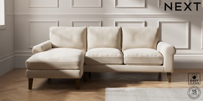 7.0.3 Buy Palermo Relaxed Sit Medium Sofa Chaise - Left Hand Tweedy Blend Easy Clean Oyster Tapered - Mid from the Next UK online shop Click here to use our accessible website