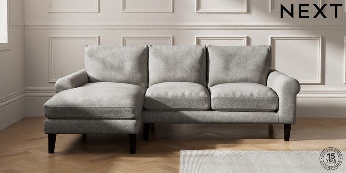 7.0.3 Buy Palermo Relaxed Sit Medium Sofa Chaise - Left Hand Tweedy Chenille Mid Grey Tapered - Dark from the Next UK online shop Click here to use our accessible website