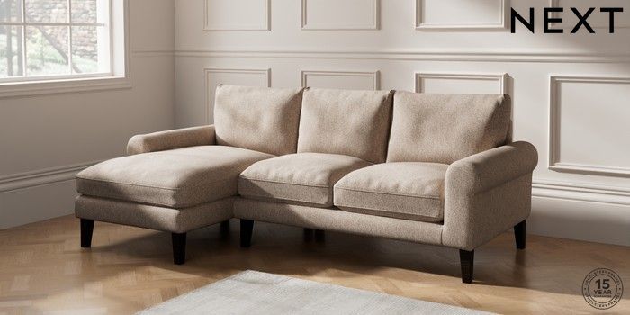 6.12.1 Buy Palermo Relaxed Sit Medium Sofa Chaise - Left Hand Tweedy Chenille Mid Natural Tapered - Dark from the Next UK online shop Click here to use our accessible website