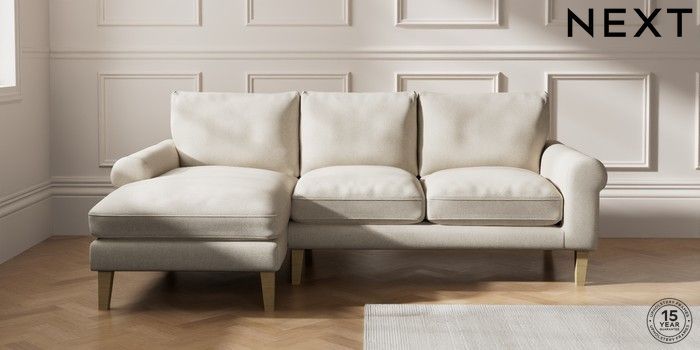 7.0.3 Buy Palermo Relaxed Sit Medium Sofa Chaise - Left Hand Tweedy Chenille Oyster Tapered - Light from the Next UK online shop Click here to use our accessible website