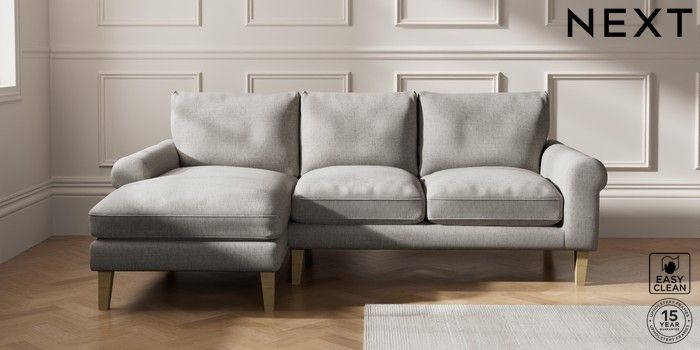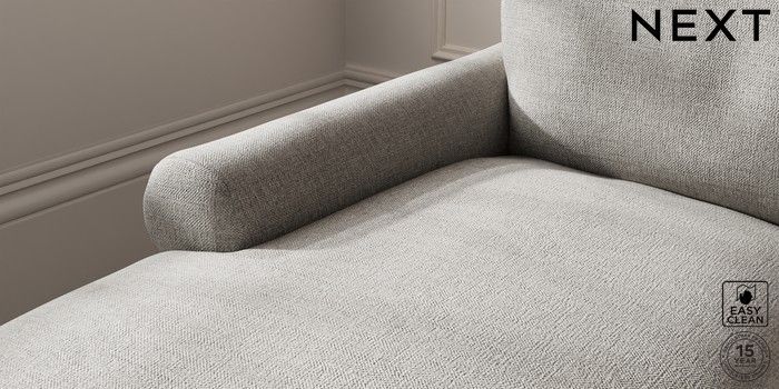 7.0.3 Buy Palermo Relaxed Sit Medium Sofa Chaise - Left Hand Woven Chenille Easy Clean Light Grey Tapered - Light from the Next UK online shop Click here to use our accessible website