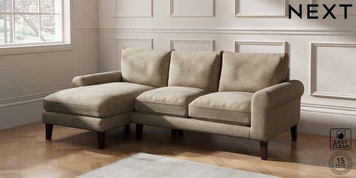 6.12.1 Buy Palermo Relaxed Sit Medium Sofa Chaise - Left Hand Woven Chenille Easy Clean Mid Natural Tapered - Dark Brown from the Next UK online shop Click here to use our accessible website