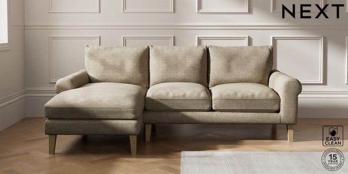 7.0.3 Buy Palermo Relaxed Sit Medium Sofa Chaise - Left Hand Woven Chenille Easy Clean Mid Natural Tapered - Light from the Next UK online shop Click here to use our accessible website