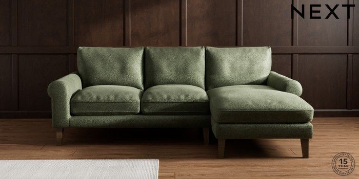 7.0.3 Buy Palermo Relaxed Sit Medium Sofa Chaise - Right Hand Boucle Chenille Dark Moss Green Tapered - Mid from the Next UK online shop Click here to use our accessible website