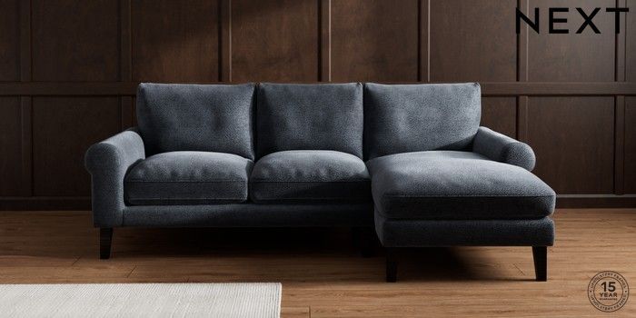 7.0.3 Buy Palermo Relaxed Sit Medium Sofa Chaise - Right Hand Boucle Chenille Dark Slate Blue Tapered - Dark from the Next UK online shop Click here to use our accessible website
