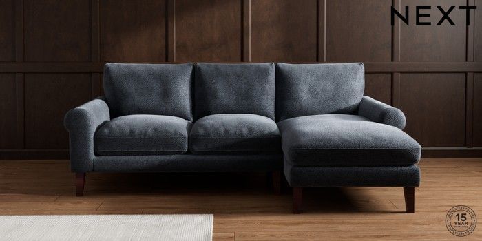 7.0.3 Buy Palermo Relaxed Sit Medium Sofa Chaise - Right Hand Boucle Chenille Dark Slate Blue Tapered - Dark Brown from the Next UK online shop Click here to use our accessible website