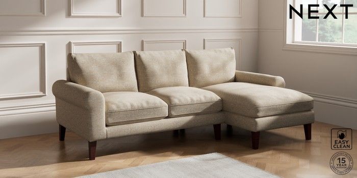 6.12.1 Buy Palermo Relaxed Sit Medium Sofa Chaise - Right Hand Boucle Weave Easy Clean Dark Natural Tapered - Dark Brown from the Next UK online shop Click here to use our accessible website