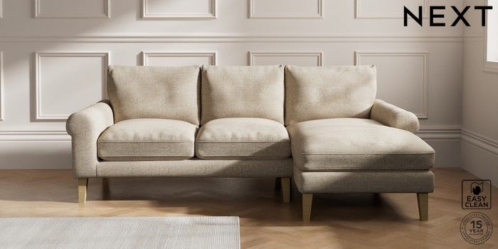 7.0.3 Buy Palermo Relaxed Sit Medium Sofa Chaise - Right Hand Boucle Weave Easy Clean Dark Natural Tapered - Light from the Next UK online shop Click here to use our accessible website