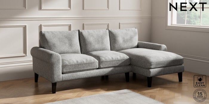 6.12.1 Buy Palermo Relaxed Sit Medium Sofa Chaise - Right Hand Chunky Boucle Easy Clean Light Grey Tapered - Dark from the Next UK online shop Click here to use our accessible website