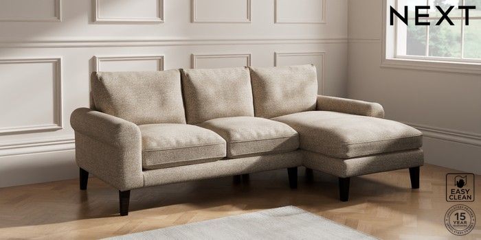 6.12.1 Buy Palermo Relaxed Sit Medium Sofa Chaise - Right Hand Chunky Boucle Easy Clean Mid Natural Tapered - Dark from the Next UK online shop Click here to use our accessible website