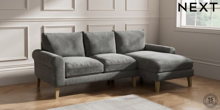 6.12.1 Buy Palermo Relaxed Sit Medium Sofa Chaise - Right Hand Chunky Chenille Dark Grey Tapered - Light from the Next UK online shop Click here to use our accessible website