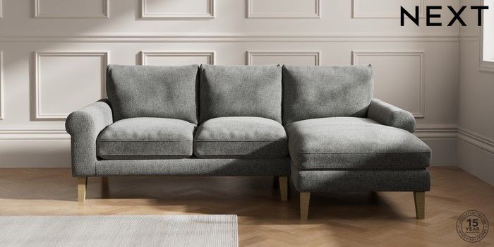 7.0.3 Buy Palermo Relaxed Sit Medium Sofa Chaise - Right Hand Chunky Chenille Dark Grey Tapered - Light from the Next UK online shop Click here to use our accessible website