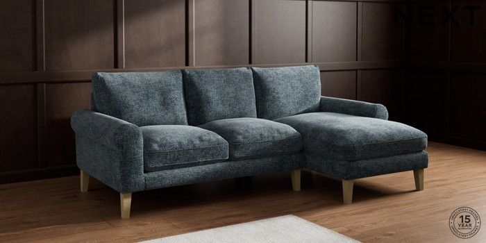 6.12.1 Buy Palermo Relaxed Sit Medium Sofa Chaise - Right Hand Chunky Chenille Dark Navy Blue Tapered - Light from the Next UK online shop Click here to use our accessible website