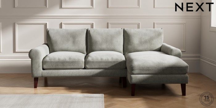 7.0.3 Buy Palermo Relaxed Sit Medium Sofa Chaise - Right Hand Chunky Chenille Light Grey Tapered - Dark Brown from the Next UK online shop Click here to use our accessible website