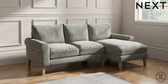 6.12.1 Buy Palermo Relaxed Sit Medium Sofa Chaise - Right Hand Chunky Chenille Light Grey Tapered - Light from the Next UK online shop Click here to use our accessible website