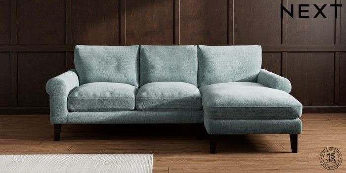 7.0.3 Buy Palermo Relaxed Sit Medium Sofa Chaise - Right Hand Chunky Chenille Light Teal Green Tapered - Dark from the Next UK online shop Click here to use our accessible website
