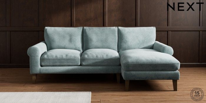 7.0.3 Buy Palermo Relaxed Sit Medium Sofa Chaise - Right Hand Chunky Chenille Light Teal Green Tapered - Mid from the Next UK online shop Click here to use our accessible website