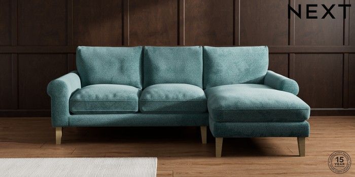 7.0.3 Buy Palermo Relaxed Sit Medium Sofa Chaise - Right Hand Chunky Chenille Mid Teal Green Tapered - Light from the Next UK online shop Click here to use our accessible website