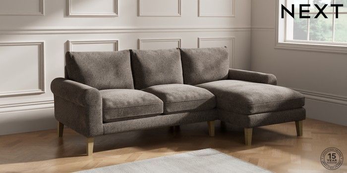 6.12.1 Buy Palermo Relaxed Sit Medium Sofa Chaise - Right Hand Chunky Chenille Mink Brown Tapered - Light from the Next UK online shop Click here to use our accessible website