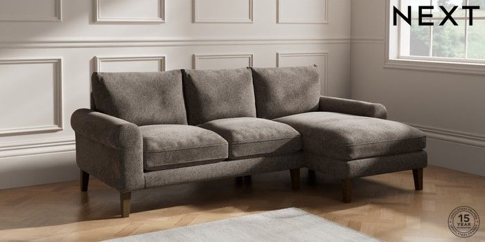 6.12.1 Buy Palermo Relaxed Sit Medium Sofa Chaise - Right Hand Chunky Chenille Mink Brown Tapered - Mid from the Next UK online shop Click here to use our accessible website
