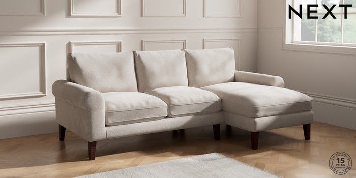 6.12.1 Buy Palermo Relaxed Sit Medium Sofa Chaise - Right Hand Chunky Chenille Oyster Tapered - Dark Brown from the Next UK online shop Click here to use our accessible website