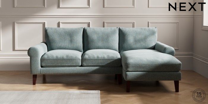 7.0.3 Buy Palermo Relaxed Sit Medium Sofa Chaise - Right Hand Chunky Marl Mid Blue Tapered - Dark Brown from the Next UK online shop Click here to use our accessible website