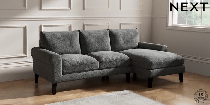 6.12.1 Buy Palermo Relaxed Sit Medium Sofa Chaise - Right Hand Chunky Texture Dark Grey Tapered - Dark from the Next UK online shop Click here to use our accessible website