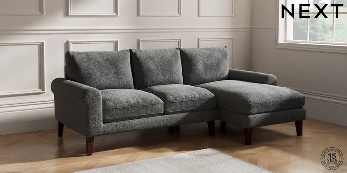6.12.1 Buy Palermo Relaxed Sit Medium Sofa Chaise - Right Hand Chunky Texture Dark Grey Tapered - Dark Brown from the Next UK online shop Click here to use our accessible website