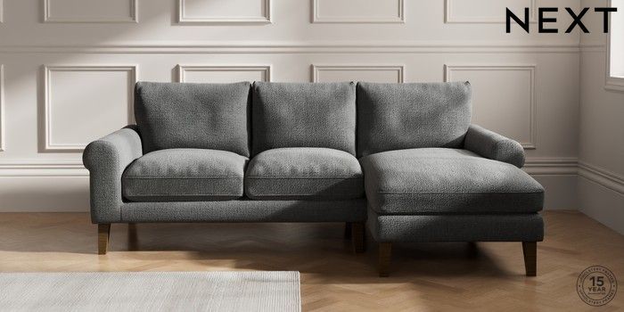 7.0.3 Buy Palermo Relaxed Sit Medium Sofa Chaise - Right Hand Chunky Texture Dark Grey Tapered - Mid from the Next UK online shop Click here to use our accessible website