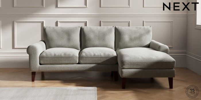 7.0.3 Buy Palermo Relaxed Sit Medium Sofa Chaise - Right Hand Chunky Texture Dove Tapered - Dark Brown from the Next UK online shop Click here to use our accessible website