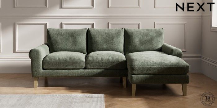 7.0.3 Buy Palermo Relaxed Sit Medium Sofa Chaise - Right Hand Chunky Texture Mid Forest Green Tapered - Light from the Next UK online shop Click here to use our accessible website