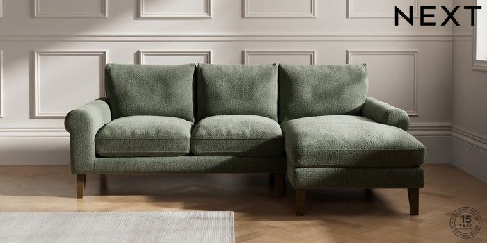 7.0.3 Buy Palermo Relaxed Sit Medium Sofa Chaise - Right Hand Chunky Texture Mid Forest Green Tapered - Mid from the Next UK online shop Click here to use our accessible website