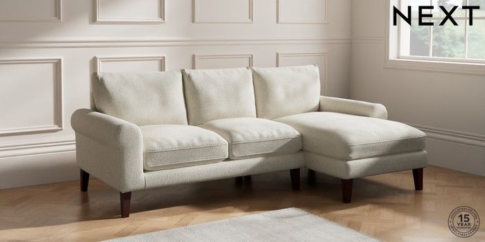 6.12.1 Buy Palermo Relaxed Sit Medium Sofa Chaise - Right Hand Chunky Texture Oyster Tapered - Dark Brown from the Next UK online shop Click here to use our accessible website