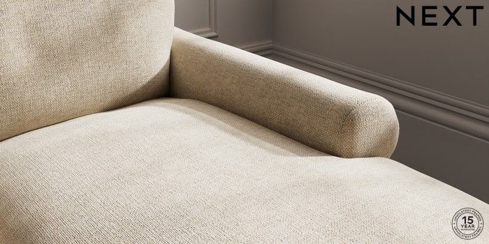7.0.3 Buy Palermo Relaxed Sit Medium Sofa Chaise - Right Hand Chunky Weave Cream Tapered - Dark Brown from the Next UK online shop Click here to use our accessible website