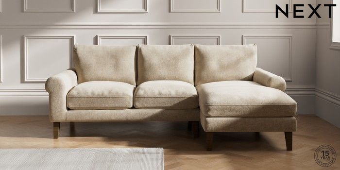 7.0.3 Buy Palermo Relaxed Sit Medium Sofa Chaise - Right Hand Chunky Weave Cream Tapered - Mid from the Next UK online shop Click here to use our accessible website