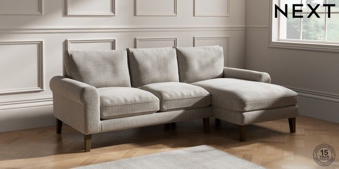 6.12.1 Buy Palermo Relaxed Sit Medium Sofa Chaise - Right Hand Chunky Weave Dove Grey Tapered - Mid from the Next UK online shop Click here to use our accessible website
