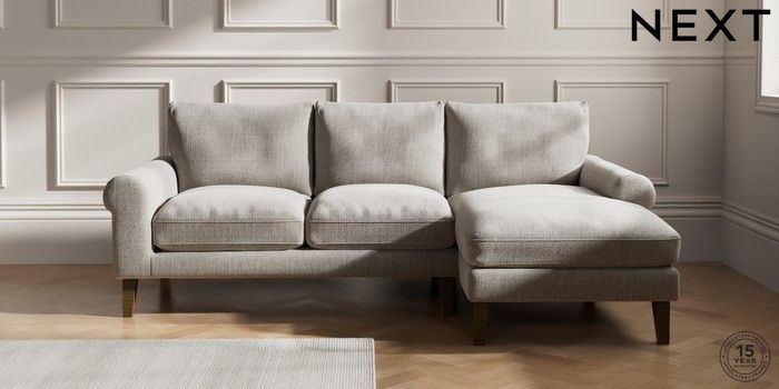 7.0.3 Buy Palermo Relaxed Sit Medium Sofa Chaise - Right Hand Chunky Weave Dove Grey Tapered - Mid from the Next UK online shop Click here to use our accessible website