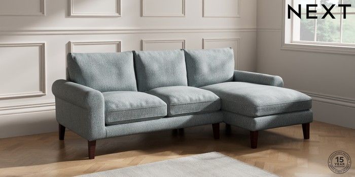 6.12.1 Buy Palermo Relaxed Sit Medium Sofa Chaise - Right Hand Chunky Weave Mid Blue Tapered - Dark Brown from the Next UK online shop Click here to use our accessible website
