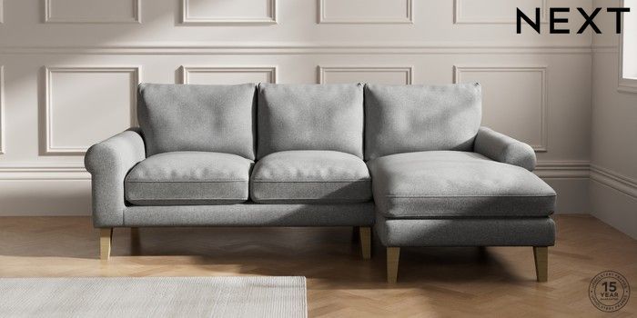 7.0.3 Buy Palermo Relaxed Sit Medium Sofa Chaise - Right Hand Chunky Weave Mid Grey Tapered - Light from the Next UK online shop Click here to use our accessible website