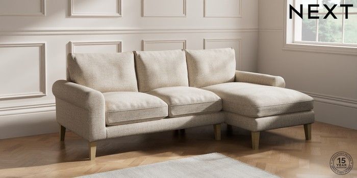 6.12.1 Buy Palermo Relaxed Sit Medium Sofa Chaise - Right Hand Chunky Weave Mid Natural Tapered - Light from the Next UK online shop Click here to use our accessible website