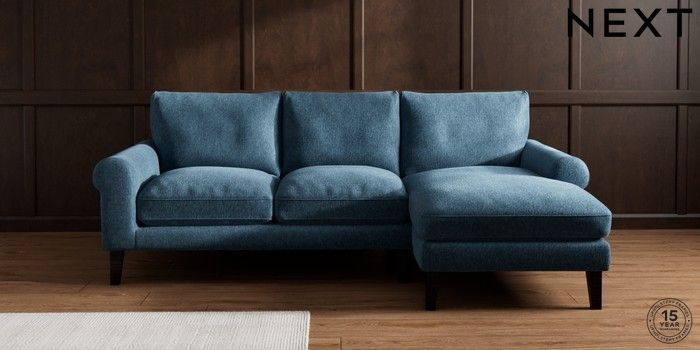 7.0.3 Buy Palermo Relaxed Sit Medium Sofa Chaise - Right Hand Cotswold Chenille Dark Blue Tapered - Dark from the Next UK online shop Click here to use our accessible website