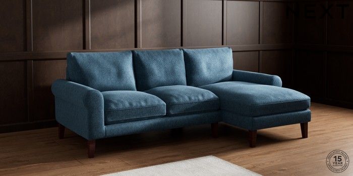 6.12.1 Buy Palermo Relaxed Sit Medium Sofa Chaise - Right Hand Cotswold Chenille Dark Blue Tapered - Dark Brown from the Next UK online shop Click here to use our accessible website